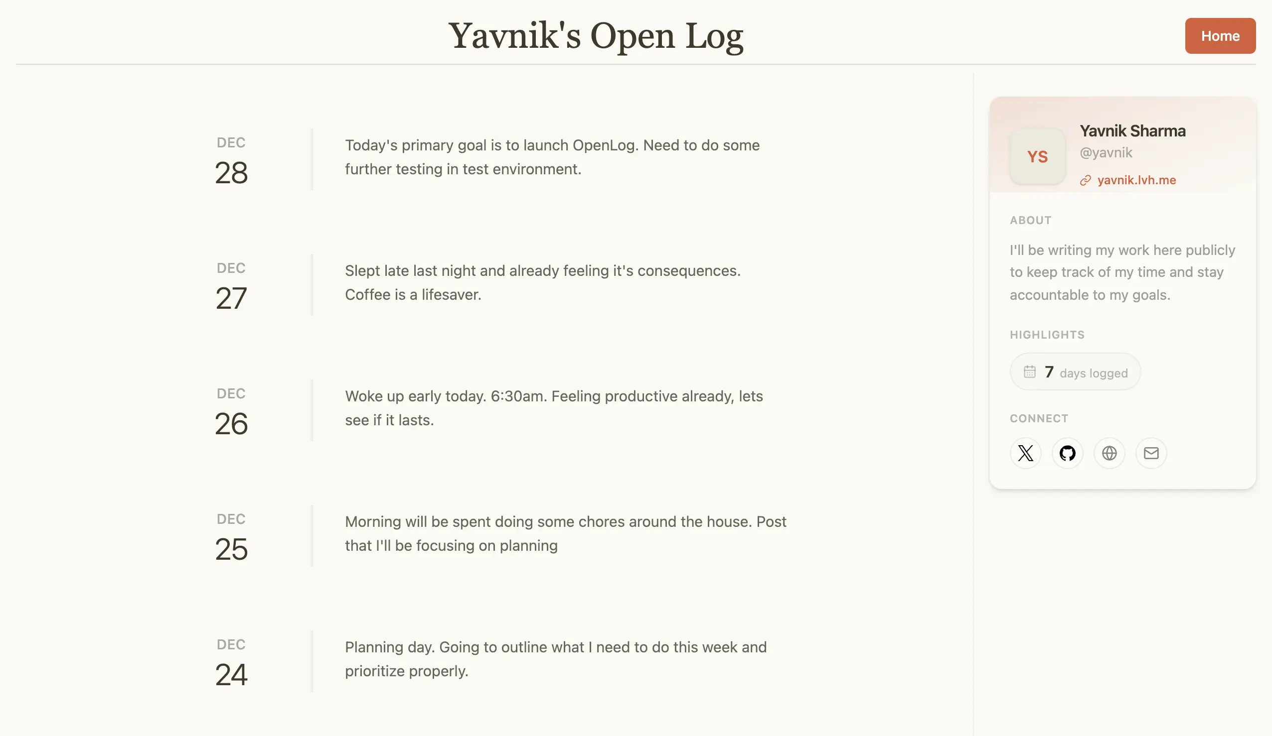 OpenLog is the public writing platform for those who own their journey. Log your days, share your progress, and let the internet keep you honest.